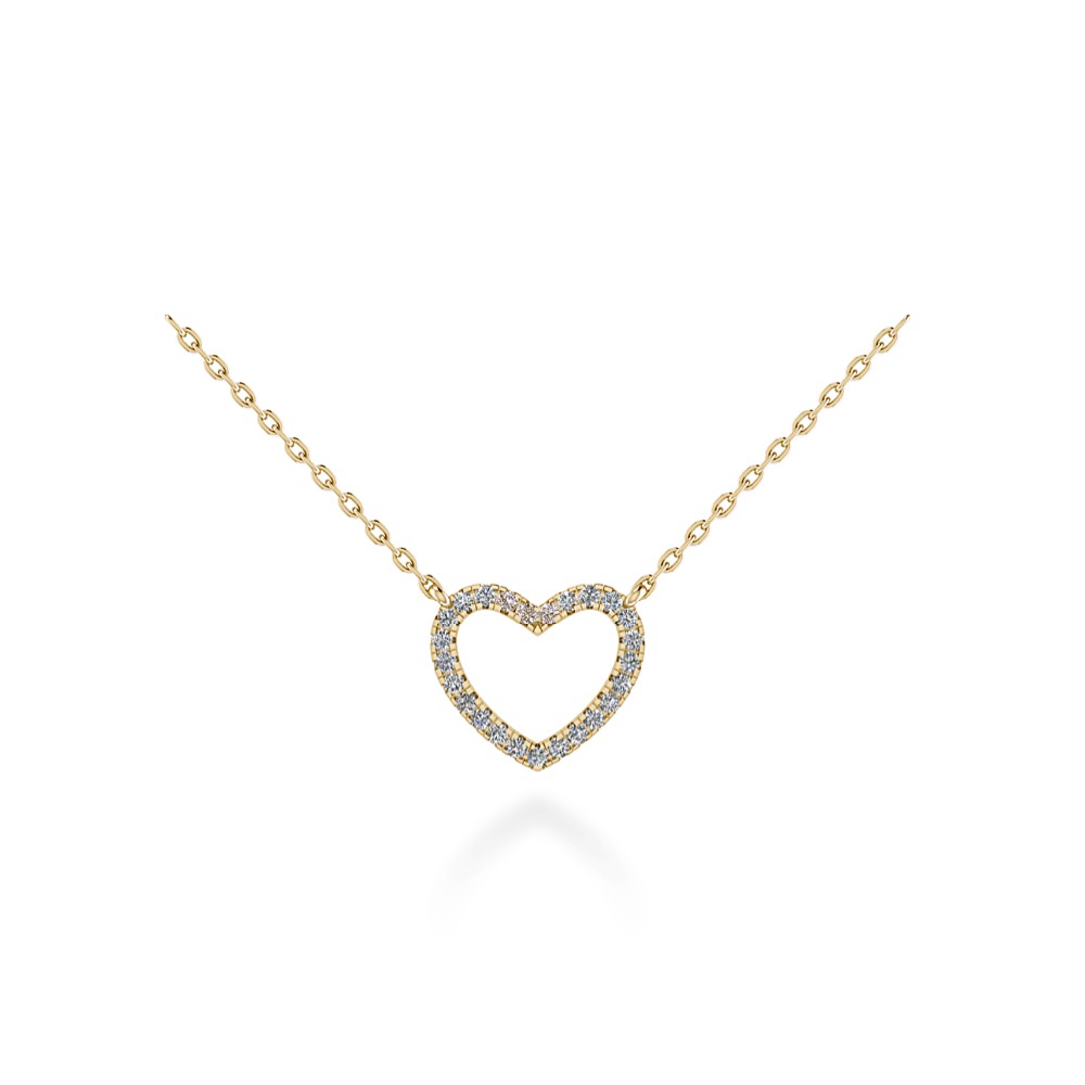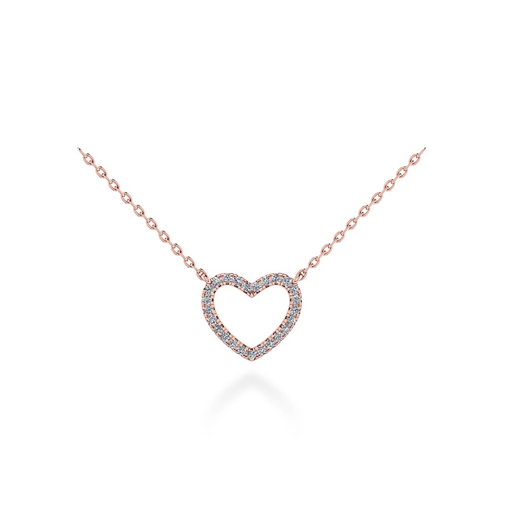 Collana con diamanti in oro 18 carati e pendente a cuore in micro pavé di diamanti naturali, disponibile in oro bianco, oro giallo e oro rosa.