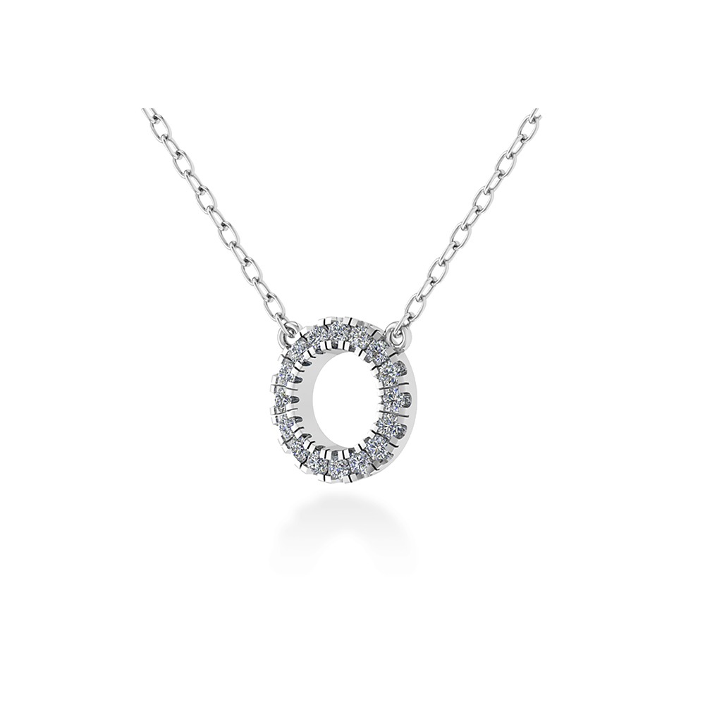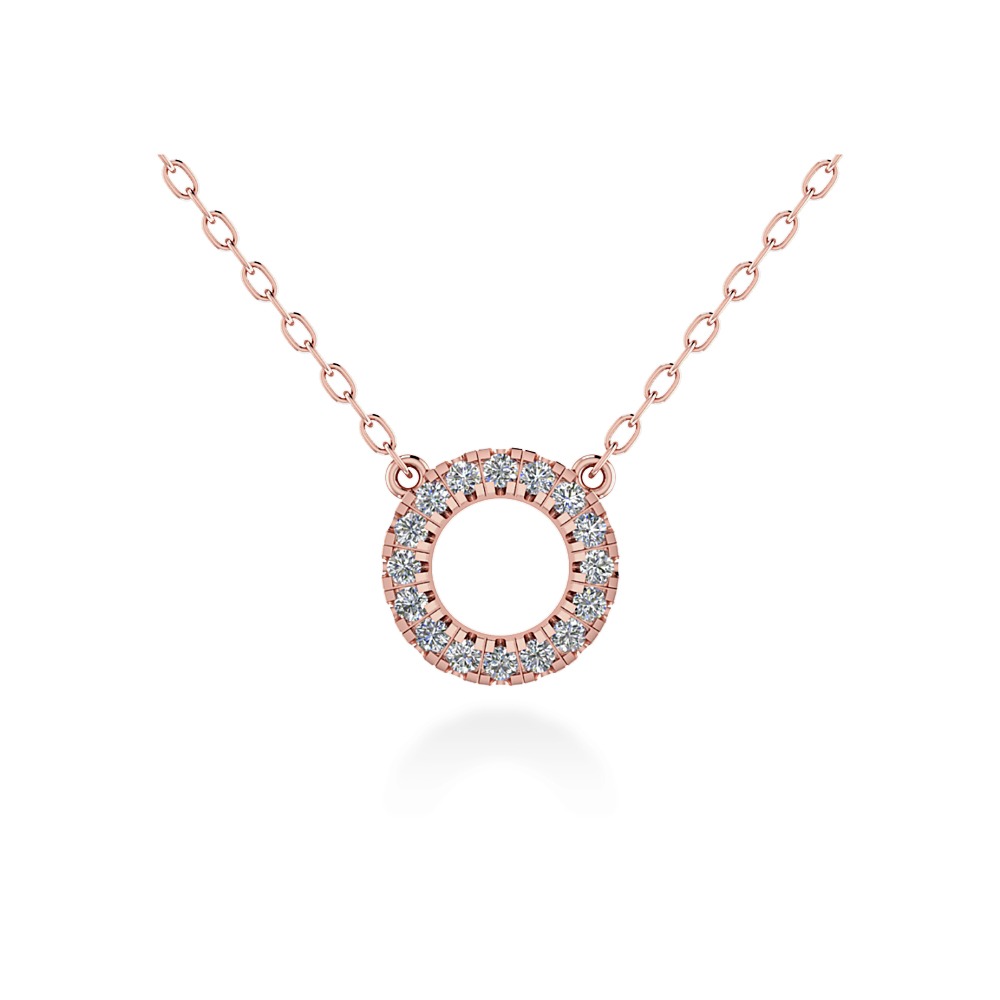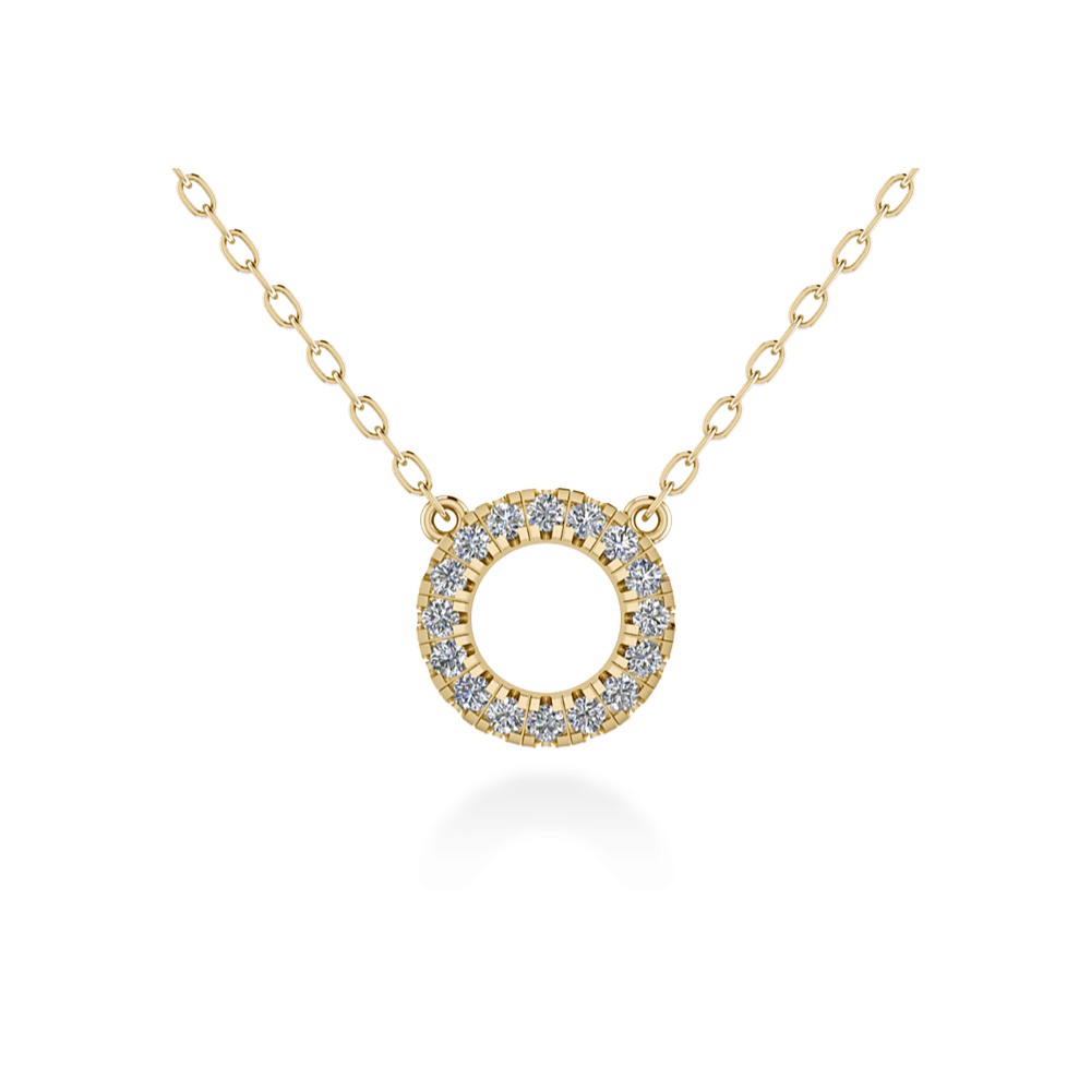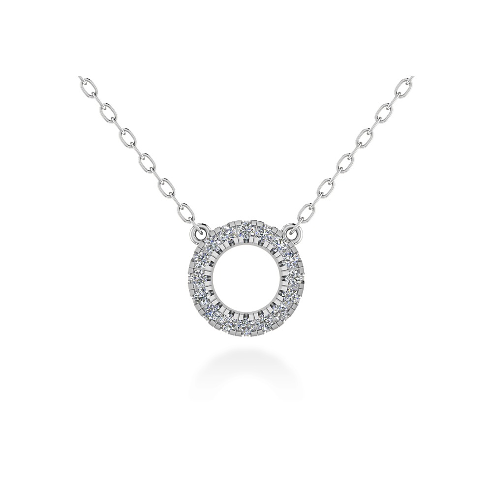 Collana con diamanti in oro 18 carati con pendente a cerchio in micro pavé di diamanti naturali, disponibile in oro bianco, oro giallo e oro rosa.