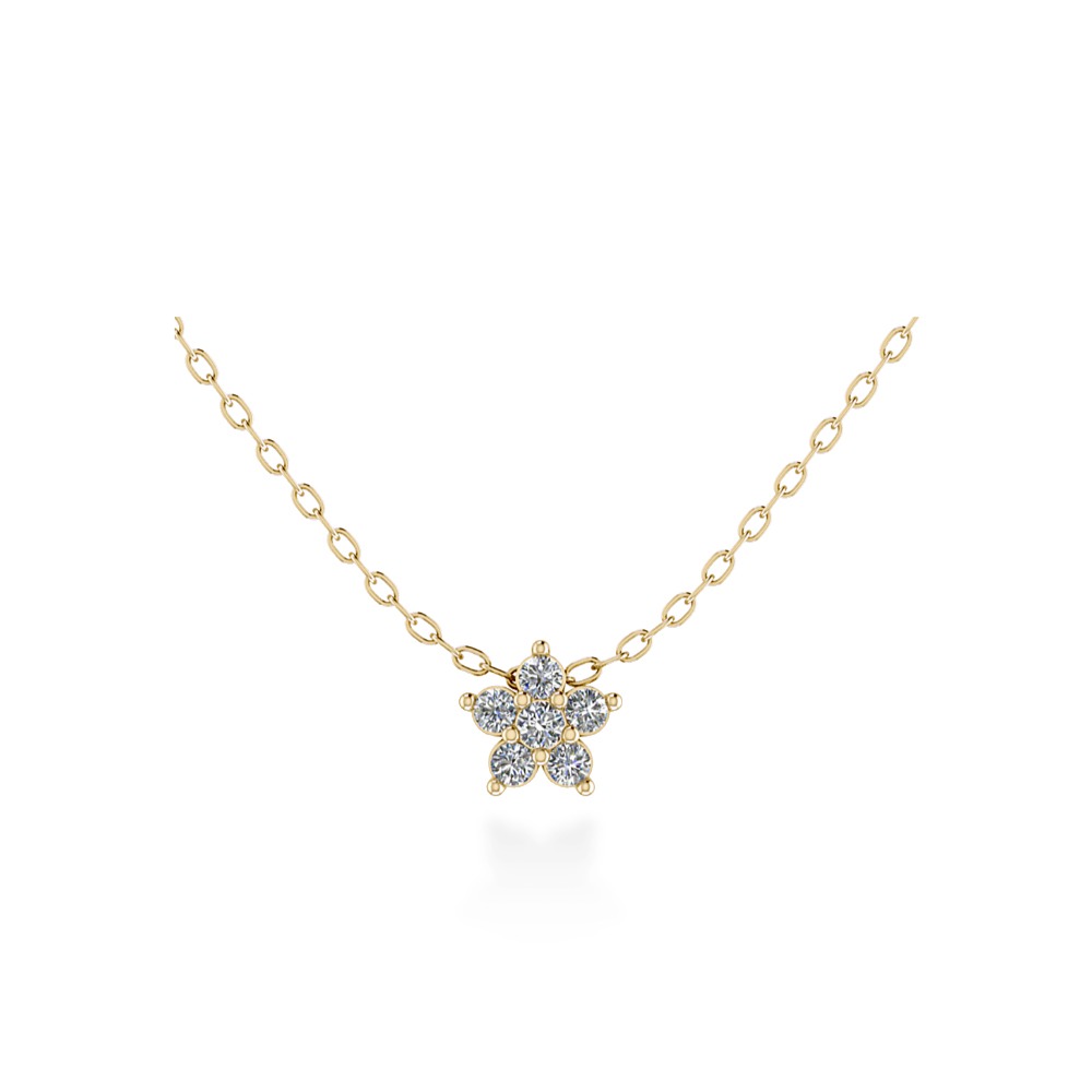 Collana fiore con diamanti in oro 18 carati, con pendente floreale a sei diamanti naturali, disponibile in oro bianco, oro giallo e oro rosa.