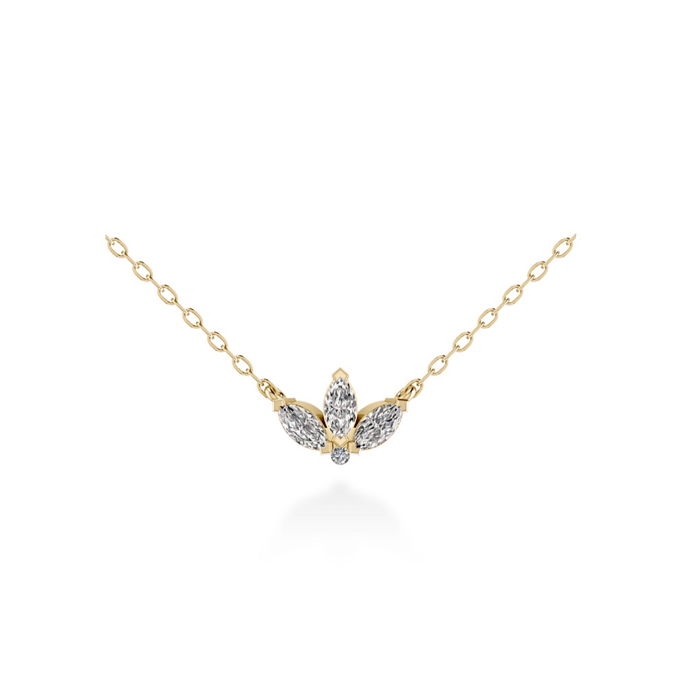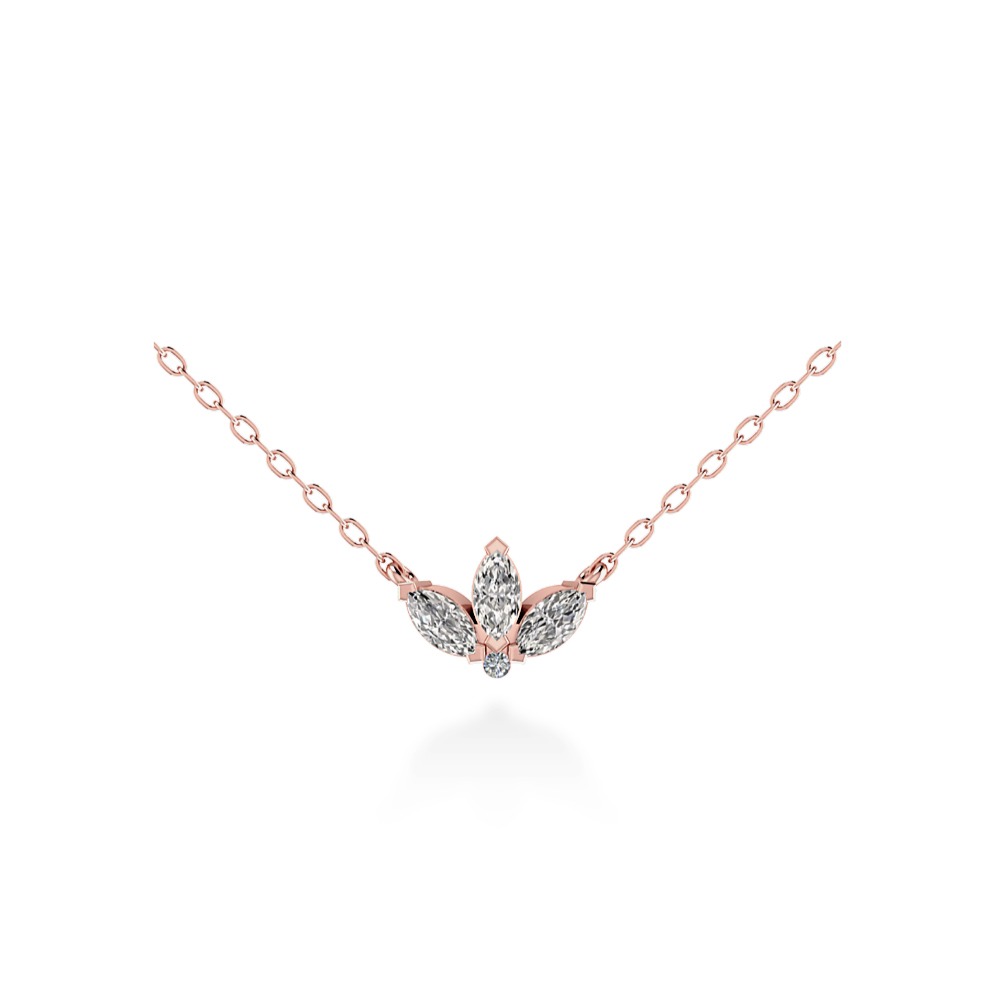 Collana fiore con diamanti in oro 18 carati con pendente a tre diamanti naturali taglio marquise e brillantino naturale, disponibile in oro bianco, oro giallo e oro rosa.