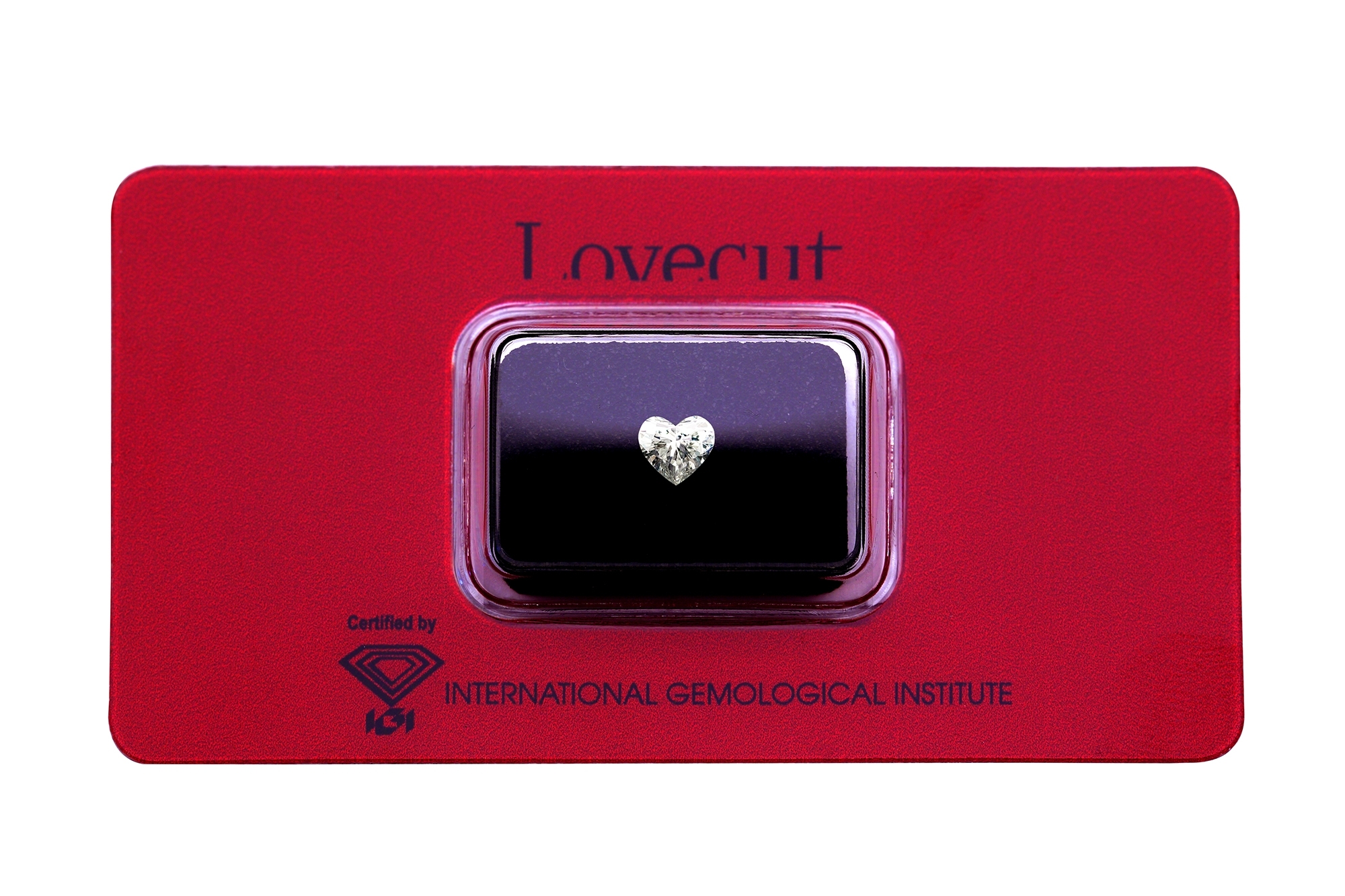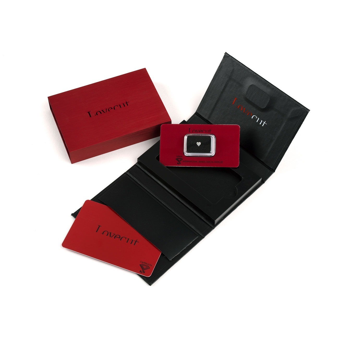 Diamante naturale certificato IGI Anversa, taglio a cuore, colore F, purezza VS1, in cofanetto regalo personalizzabile.