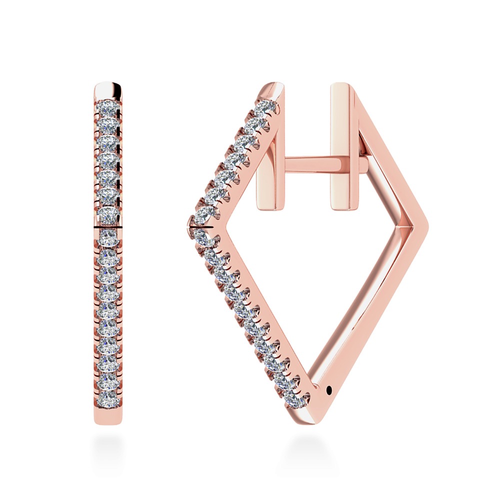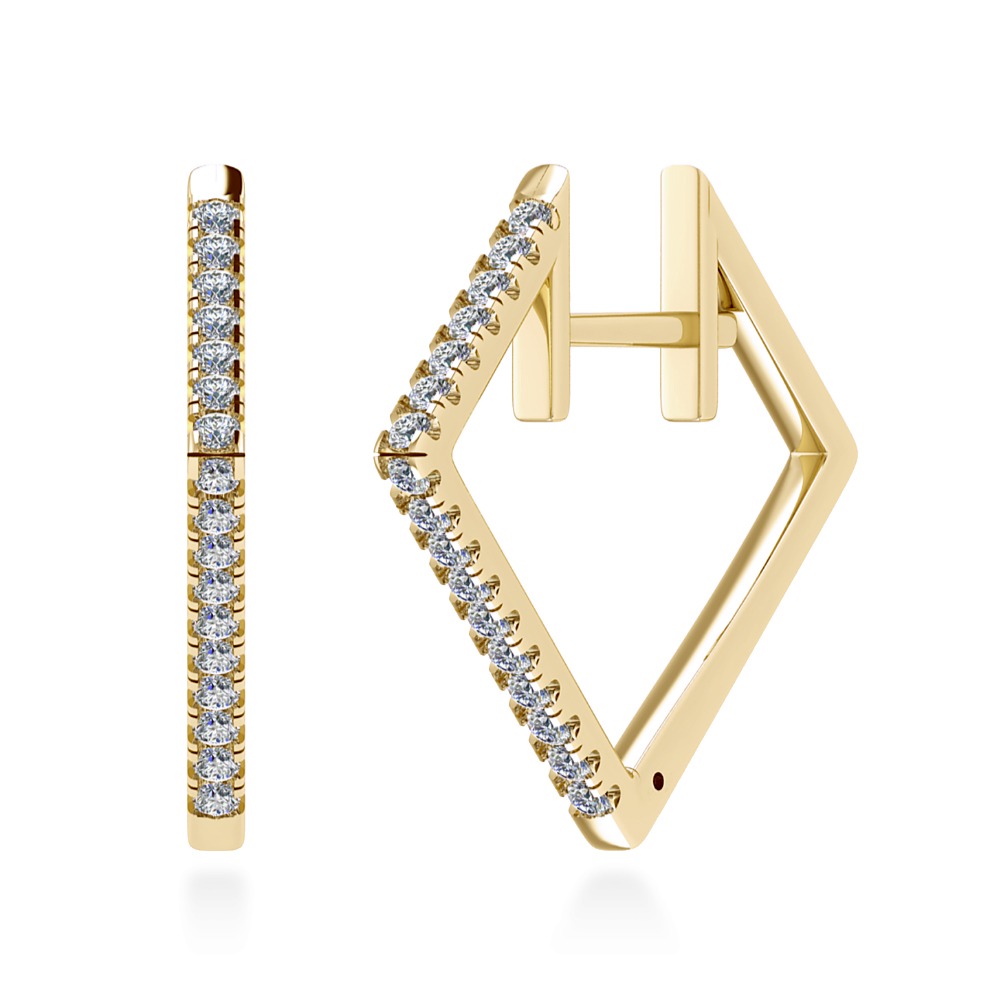 Orecchini tennis con diamanti dal design a V, in micro pavé frontale di brillanti naturali, realizzabili in oro 18 k bianco, giallo o rosa, certificati IGI Anversa.